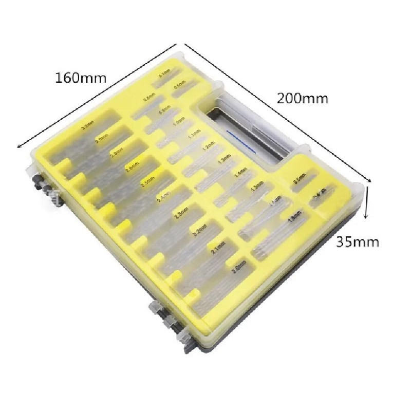 The 3.2 mm Mini Drill Bit Set consists of 150 pieces of precision drill bits, each with a 0.4 mm diameter. These bits are exceptionally small and suitable for delicate tasks like electronics, jewelry-making, or model building. Crafted from high-quality materials, they offer durability and precision, making them ideal for creating tiny holes in various materials. This versatile set empowers hobbyists and professionals alike with a wide range of drilling options in a compact, organized package.