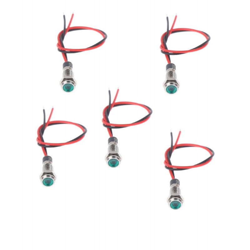 3V 5MM Green LED Metal Indicator Light with 20CMCable (Pack of 5)