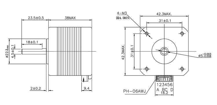 - The Nema17 4.2kgcm Stepper motor dimensions and weight may have 2% error.