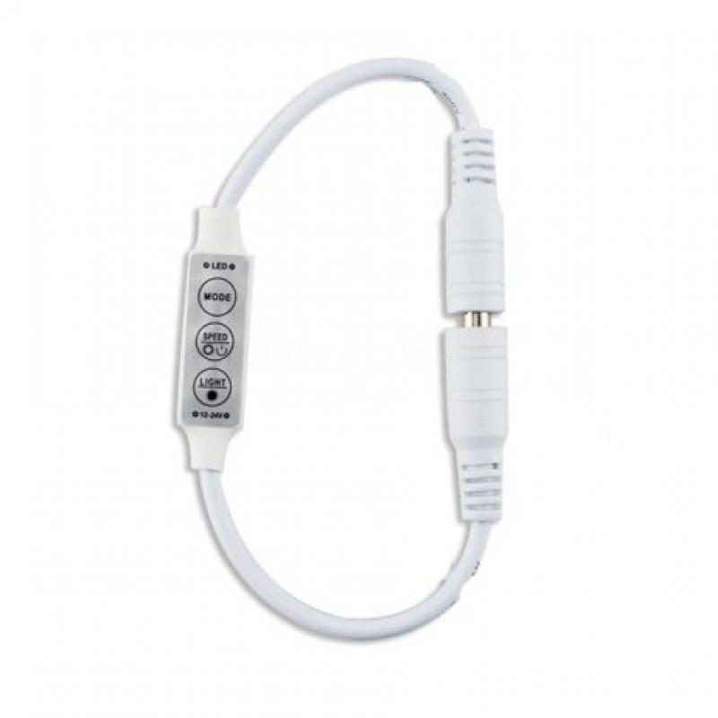 5-24V MINI 3Key LED Controller with White DC5.5*2.1 product has powerful functions and small size, it presents multiple special dynamic models, brings a new application for single colour LED decoration. Besides, it can be used as a LED dimmer. You can easily change dynamic mode, speed and brightness by pressing 3 keys on its slim body. It also has auto memorize function. Its the best mate for your LED strips.