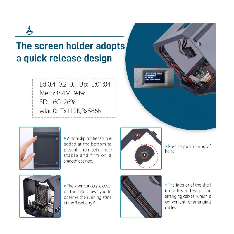 - 0.96 OLED Screen:Integrated with a small OLED screen for displaying system status information, such as temperature, CPU usage, and more.