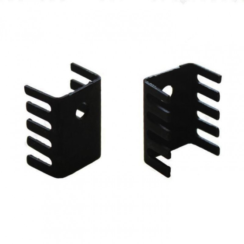 Small heat sink for TO-220. Ideal for keeping your 5V and 3.3V regulators running cool. Black anodized bolt-on type with 2.5W dissipation.