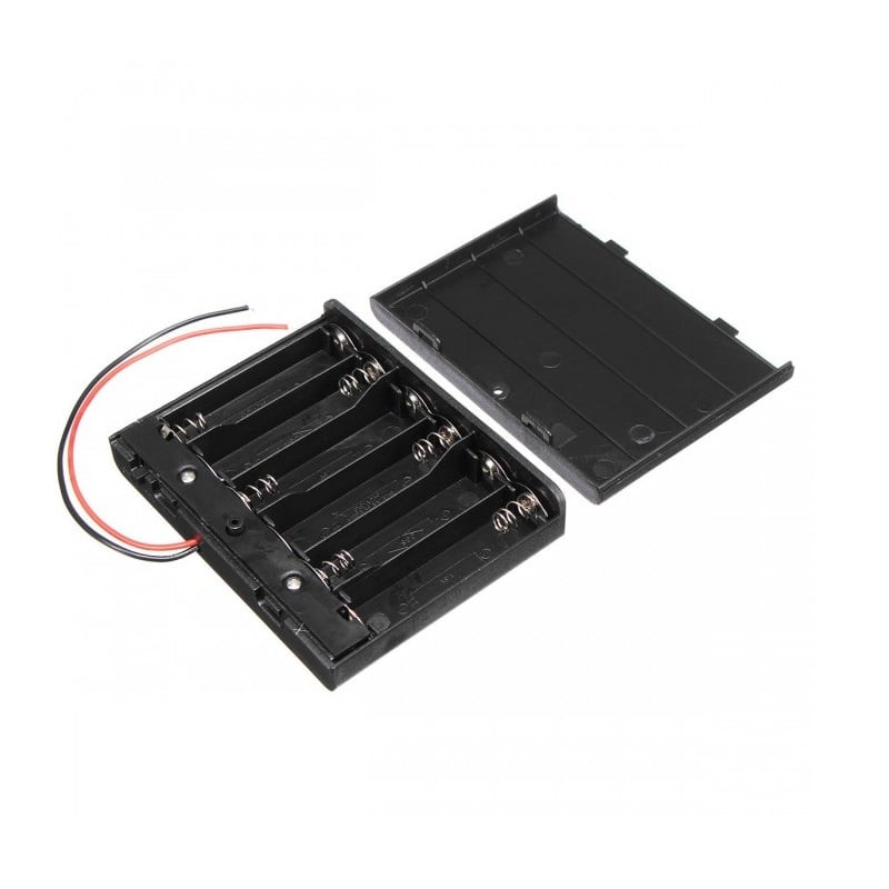 This AA x 6 Battery Holder Case Box Storage Slot w/ Wire Lead Cover Switch ON/OFF. This is 1 Battery Holder Box able to store 6 AA batteries.