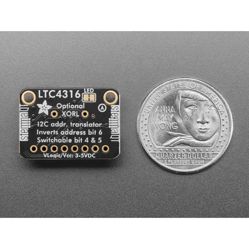Adafruits LTC4316 I2C Address Translator provides a solution to the common issue of conflicting addresses in I2C devices by offering on-the-fly address translation. With an input I2C half and an output I2C half, this chip automatically translates addresses for devices connected on the output side, making it easier to manage multiple I2C devices with fixed addresses.