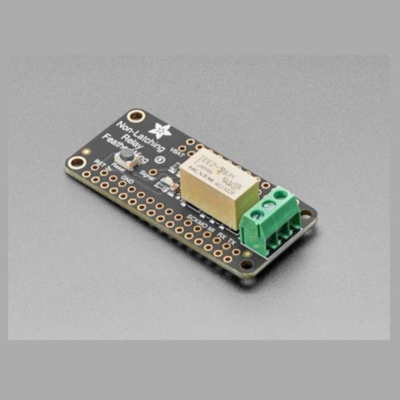 A Feather board without ambition is a Feather board without FeatherWings! This istheNon-Latching Mini Relay FeatherWing.It gives you power to control, and control over power. Put simply, you can now turn on and off lamps, fans, solenoids, and other small appliances that run on up to 250VAC or DC power using any Feather board.