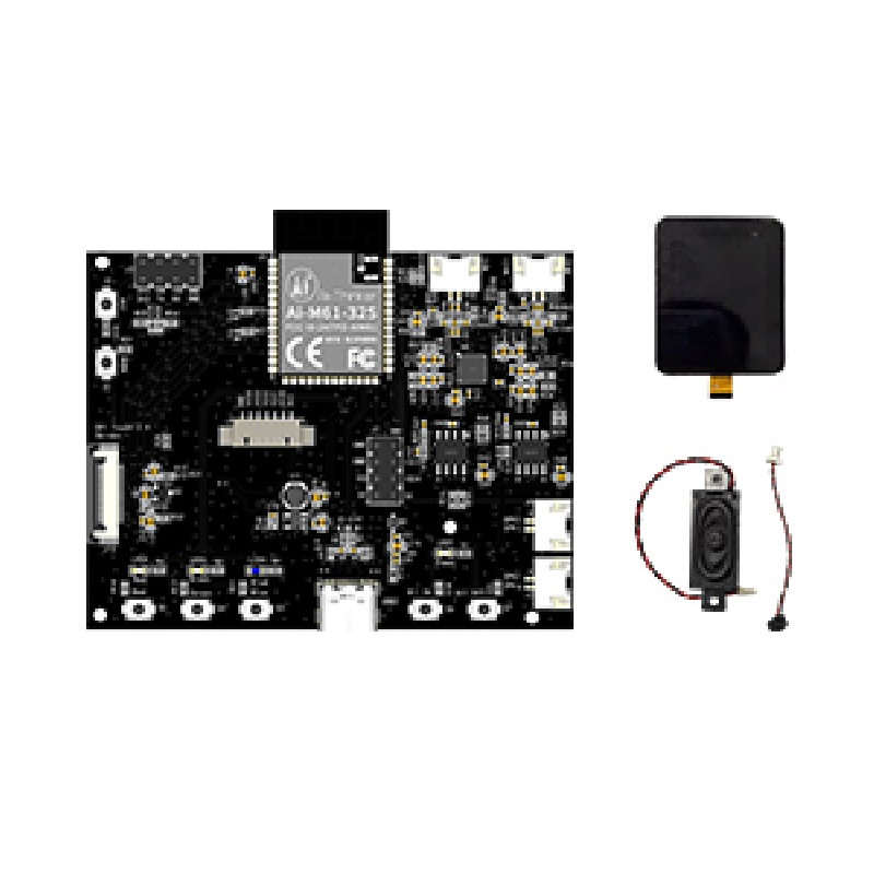 external audio circuit for voice broadcast and button group physical control. The Ai-M61-32S module equipped has rich peripheral interfaces, including DVP, MJPEG, Display, AudioCodec, USB2.0, SDU, Ethernet (EMAC), SD/MMC (SDH), SPI, UART, I2C, I2S, PWM, GPDAC, GPADC, ACOMP, GPIO, etc.