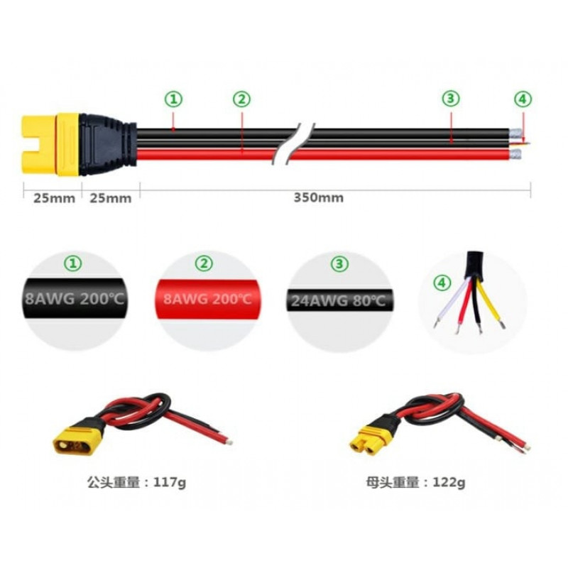 Buy Original high-quality Amass AS150U-Male with Wire 0.35m connector for power and signal, 6 pins, 2 pin 150A, . Valid connectors for UAV or VTOL with motors and servos on the wings.