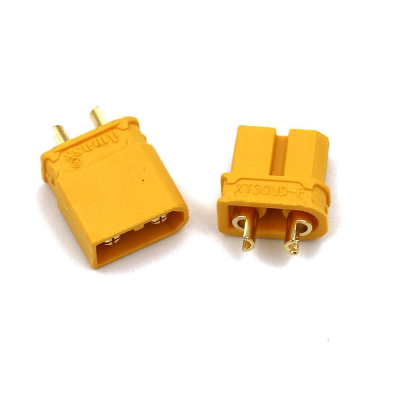 XT30U male bullet connectors with the tiny Measurement takes a small area and could place anywhere. This Connector is Made from high-temp Nylon and gold-plated bullet connectors, both included in the injection mold at the time when forming the connector. Product coating is 24K real gold, a thickness of 0.05um, plugged thousands of times, the coating will not fall off, prevent oxidation, and good electrical conductivity.