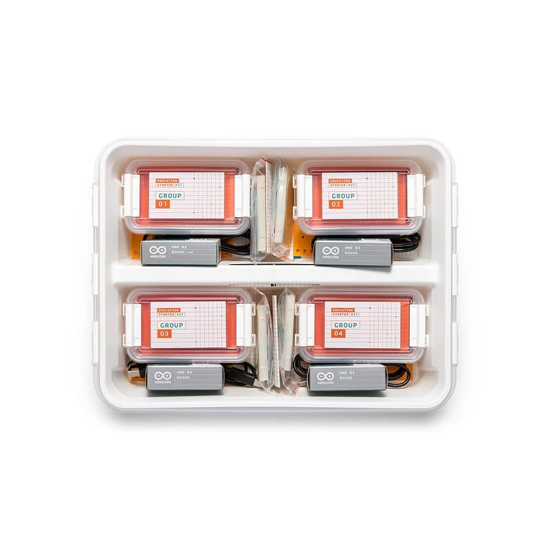 The Arduino Education Starter Kit contains all the hardware and software you need for eight students (in groups of 2). You get step-by-step-lessons, teacher notes, exercises, and for a complete and in-depth class experience theres also extra optional resources including activities, concepts, history, and interesting facts.