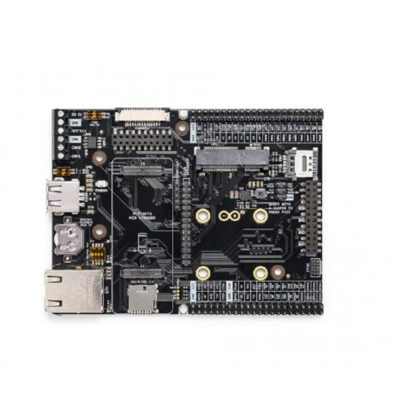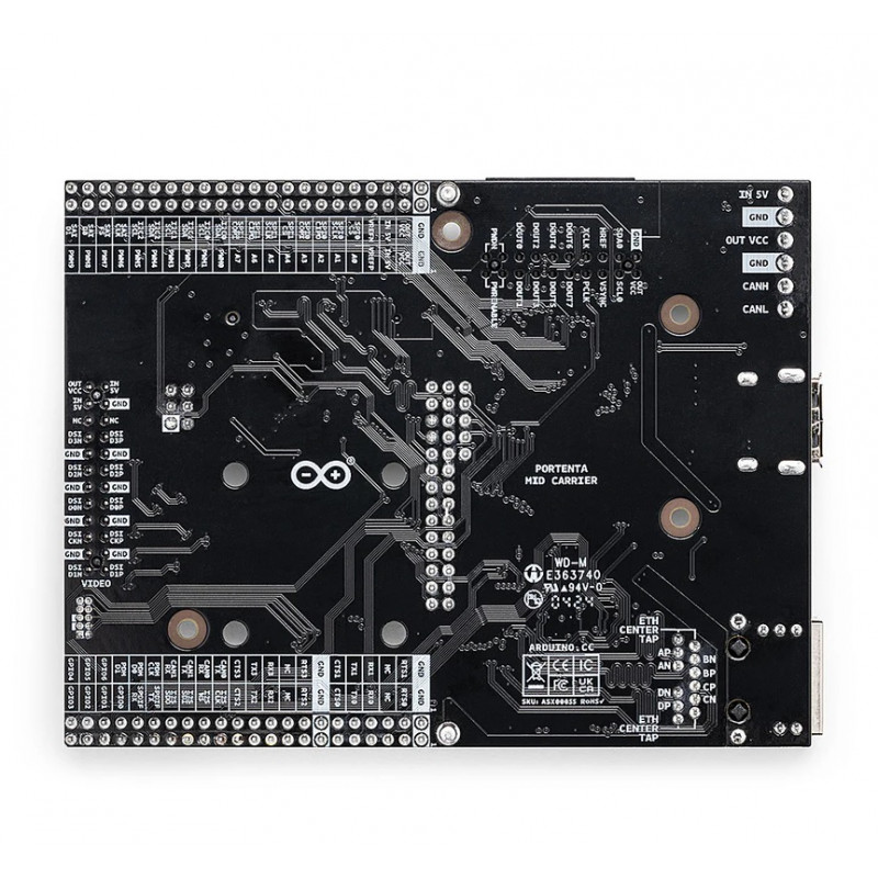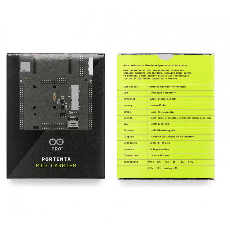 The Arduino Portenta Mid Carrier is a versatile accessory designed to enhance prototyping capabilities for the Portenta C33, H7, or X8 boards. It provides easy access to high-density signals via dedicated headers, enabling the addition of various peripherals such as mini PCIe, dual CAN lines, Ethernet, microSD, USB, and a camera. The carrier also features dedicated debug pins and an RTC battery backup, simplifying development and streamlining project integration. This makes it an essential tool for developers looking to create sophisticated IoT and edge computing solutions.