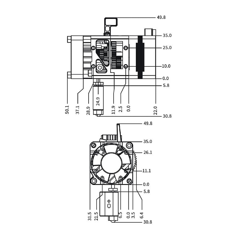 The H2 Bi-Metal Heatbreak is made of copper and titanium alloy. Its thermal break is coated with thermal compound, ensuring increased heat conduction and improved cooling performance. The heat break can be removed quickly and easily with a hex key. It has dual gear filament feed and adjustable tension with a gear ratio of 7:1 and an extrusion force of max. 7.5 kg on the gears, an extremely smooth filament feed is made possible. Also, the pressure exerted by gears on the filament can be adjusted to your liking for greater flexibility. The extrusion system features four additional mounting holes for attaching an auto-levelling sensor or a fan for even faster printing! Consists of Excellent compatibility with filaments ABS, HIPS, PLA, PET, PVA, TPU and many more. As Well as also have Excellent compatibility with 3D printers BIQU B1, BIQU BX, Ender-3, Voron 2.4, Voron V0, Vzbot.