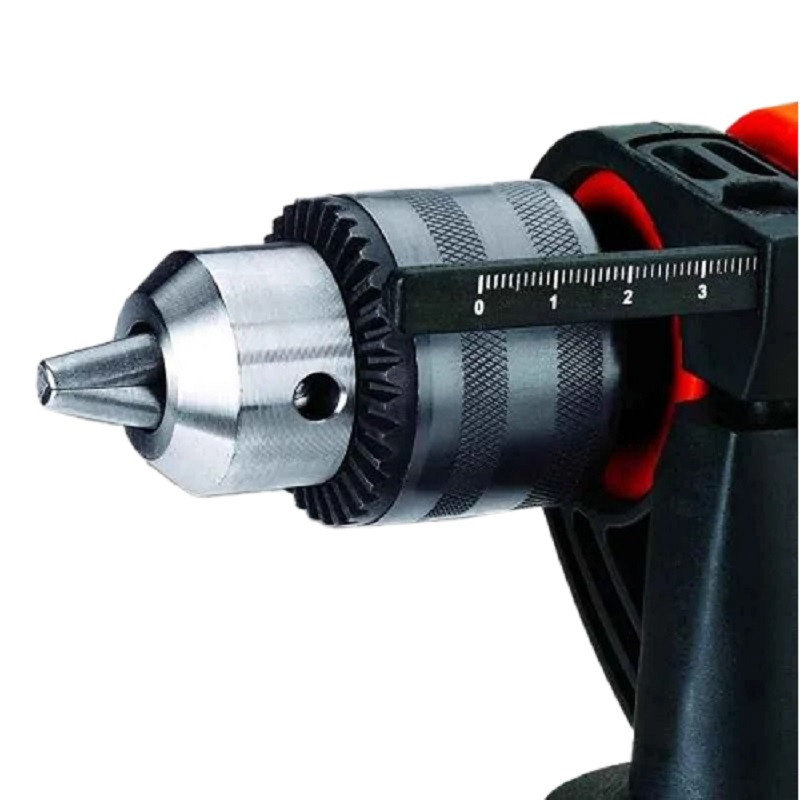 The ergonomic design of the hammer drill ensures comfortable handling and reduces user fatigue during extended use. The keyed chuck design provides secure bit retention, enhancing stability during operation. The integrated depth gauge facilitates accurate and consistent drilling depths, while the lock-on button contributes to user comfort during prolonged tasks.
