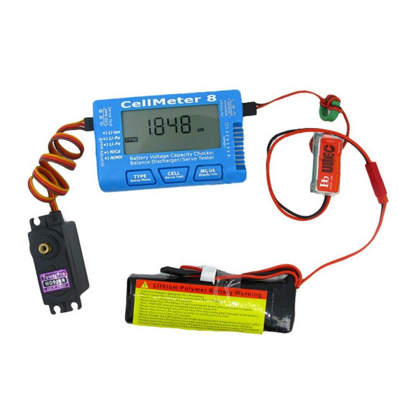The Cellmeter 8 Multi-Functional Digital Power servo Tester is an essential piece of equipmentany hobbyist using LiPo batteries should own.The Cellmeter 8 will help you to quickly diagnose the health of your pack with an easy to read LCD screen, this unit works with any LiPo pack from 2s~8s.