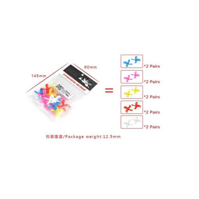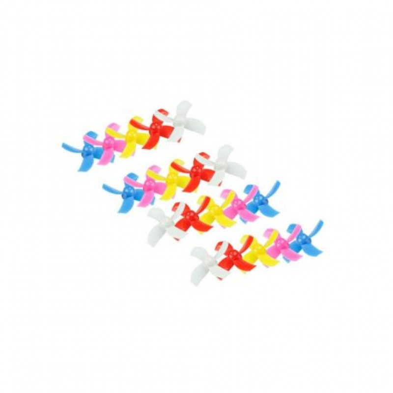 Here with have a great value bumper pack of multicolored 31MM 4 Blade Whoop Props. You get 10x CW/CCW pairs, which is equivalent to a complete five sets, so you shouldnt be running out of them anytime soon. This prop fits coreless (brushed) and brushless motors with a 0.8mm shaft and is typically used by Tiny Whoops, for example, the LDARC TINY 6X, Eachine E010 E010C E010S & Blade Inductrix.