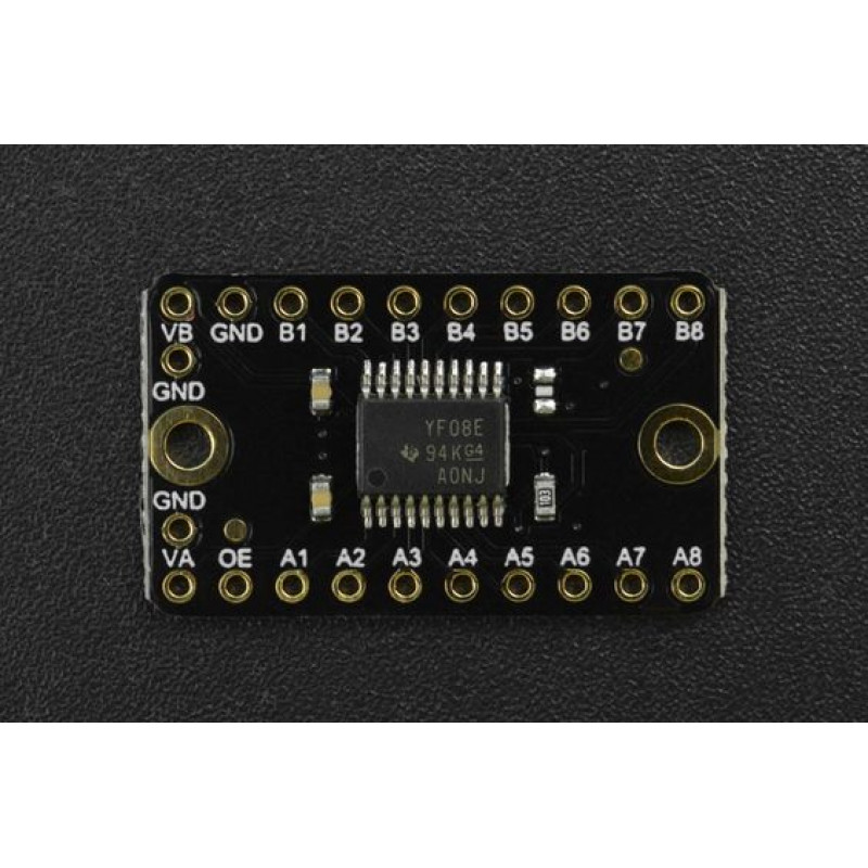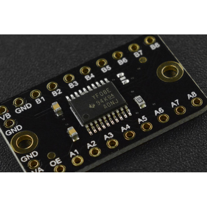 This 8-bit non-inverting translator uses two separate configurable power-supply rails. The A port is designed to track VCCA. VCCA accepts any supply voltage from 1.2 V to 3.6 V. VCCA must be less than or equal to VCCB. The B port is designed to track VCCB. VCCB accepts any supply voltage from 1.65 V to 5.5 V. This allows for low-voltage bidirectional translation between any of the 1.2V, 1.8-V, 2.5-V, 3.3-V, and 5V voltage nodes. It can automatically track the power supply voltage and its conversion speed can reach up to 60Mbps in push-pull applications. The module can be used in the level conversion of communication protocols such as I2C, UART, SPI, and OneWire.