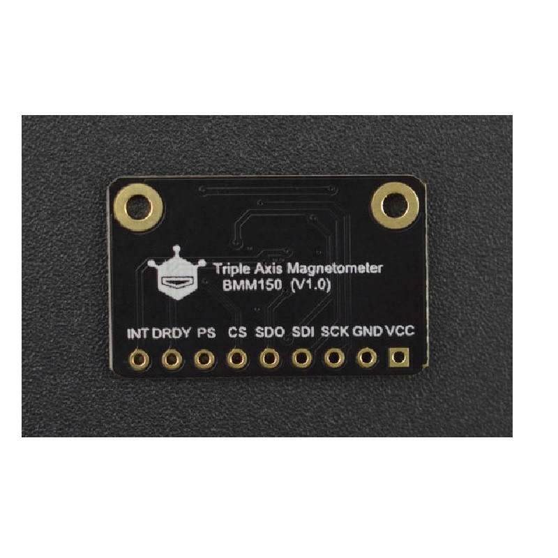 The BMM150 is a low-power and low noise 3-axis digital geomagnetic sensor that perfectly matches the requirements of compass applications. Based on Boschs proprietary Flip Core technology, the BMM150 provides absolute spatial orientation and motion vectors with high accuracy and dynamics. Featuring small size and lightweight, it is also especially suited for supporting drones in accurate heading. The DFRobot Fermion BMM150 Triple Axis Magnetometer Sensor (Breakout) can also be used together with an inertial measurement unit consisting of a 3-axis accelerometer and a 3-axis gyroscope.