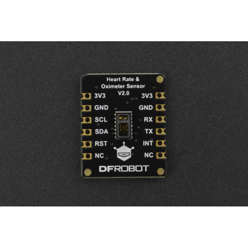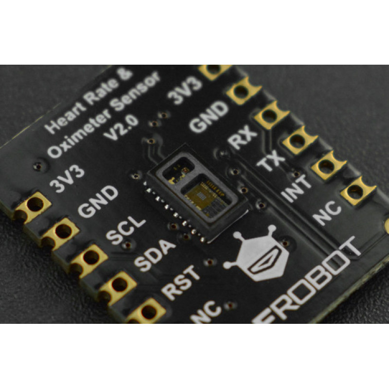 The DFRobot heart rate and oximeter sensor integrate the Maxim MAX30102 chip and an MCU with a heart rate and oximetry algorithm.