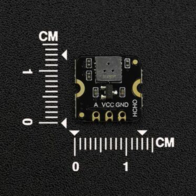 This is DFRobot Fermion MEMS Formaldehyde HCHO Gas Detection Sensor (Breakout, 0-3ppm). Fermion: MEMS Formaldehyde HCHO Gas Detection Sensor employs state-of-the-art micro-electromechanical system (MEMS) technology, endowing the sensor with compact dimensions (13x13x2.5mm), low power consumption (20mA), minimal heat generation, short preheating time, and swift response recovery. This sensor qualitatively measures the concentration of formaldehyde gas, making it suitable for applications in air purifiers, HVAC systems, smart wearables, portable detectors, and more.