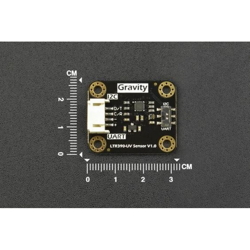 This Gravity: LTR390-UV sensor from DFRobot provides both ambient light and UV sensing with UV spectral response from 280nm to 430nm and raw data output. It features high sensitivity, quick response, and strong anti-interference ability.