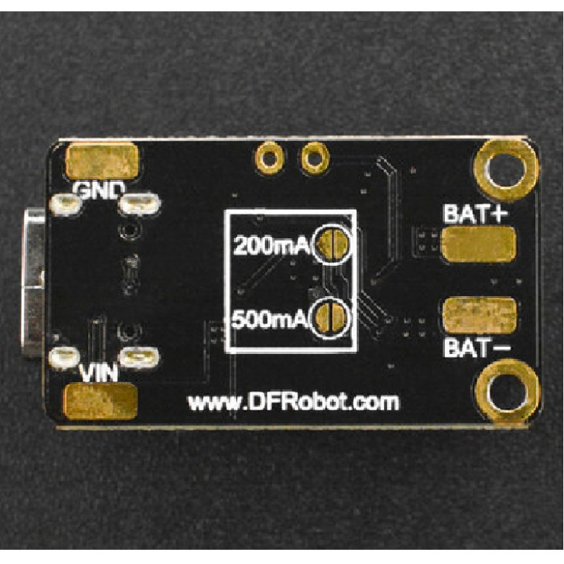 This is a Type-CLipo charger designed for single-cell 3.7V lithium battery. The compact size makes it easy to integrate into your applications. The charger adopts TP4056X lithium battery charging IC, which guarantees you quick and safe charging, and also you can easily switch between 3 output currents (the default output current is 50mA) by selecting different bonding pads on the back. The thermal feedback inside the TP4056X can automatically adjust the charging current to limit the chip temperature under high power operation or high ambient temperature conditions.