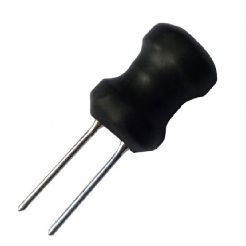 100uH 9x12mm Radial Leaded Power Inductor is a small choke coil power inductor. It has a wire wound on the core(magnetic or air), with leads attached to it for through-hole mounting.