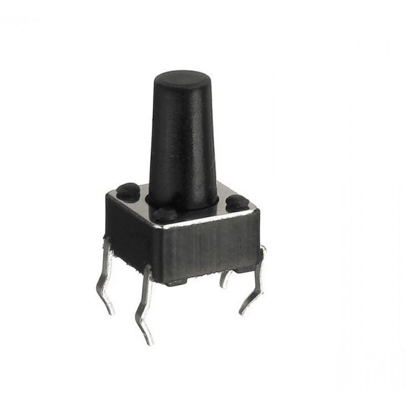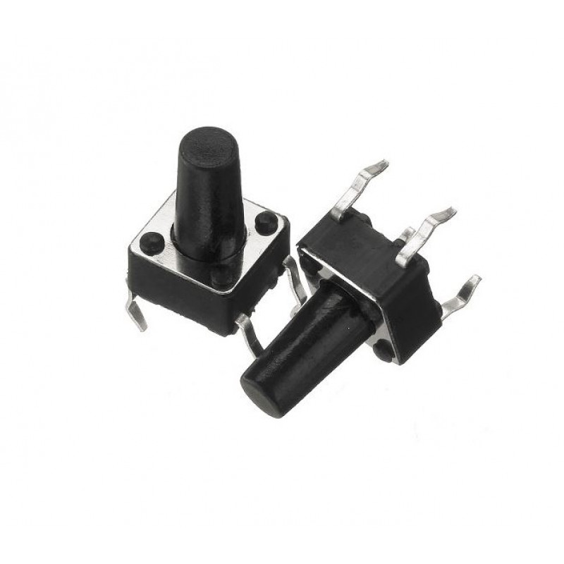 6x6x10mm Tactile 4 Pin Push Button Switch is widely used as a standard input buttons on electronic projects. These work best when you mount it on PCB but can also be used on a solderless breadboard for temporary connections in prototypes. The pins are normally open (disconnected) and when the button is pressed they are momentarily closed and complete the circuit.