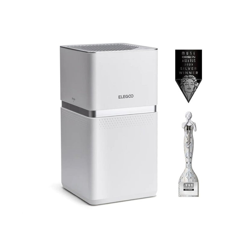 ELEGOO Mars Mateair purifier with a built-in high-density activated carbon filter can effectively absorb resin odor, with a purification efficiency of up to 95% for TVOC. Unique air duct design, automatic switching between low and high fan speed modes, and 6W ultra-low operating power can significantly reduce working noise to 35dB, energy-saving and quiet.The Mars Mate air purifier comes with a VOC sensor inside, which can effectively monitor the VOC concentration and make an early alert to remind you to replace the filter element, and you can reset the filter element through the filter reset button.