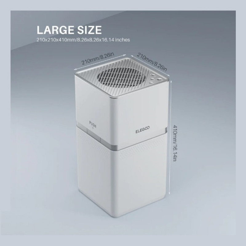Designed with a large size of 210x247x410mm/8.269.7216.14 inches for long-lasting and more efficient purification. Engineering plastic ABS air purifier body is durable to use.