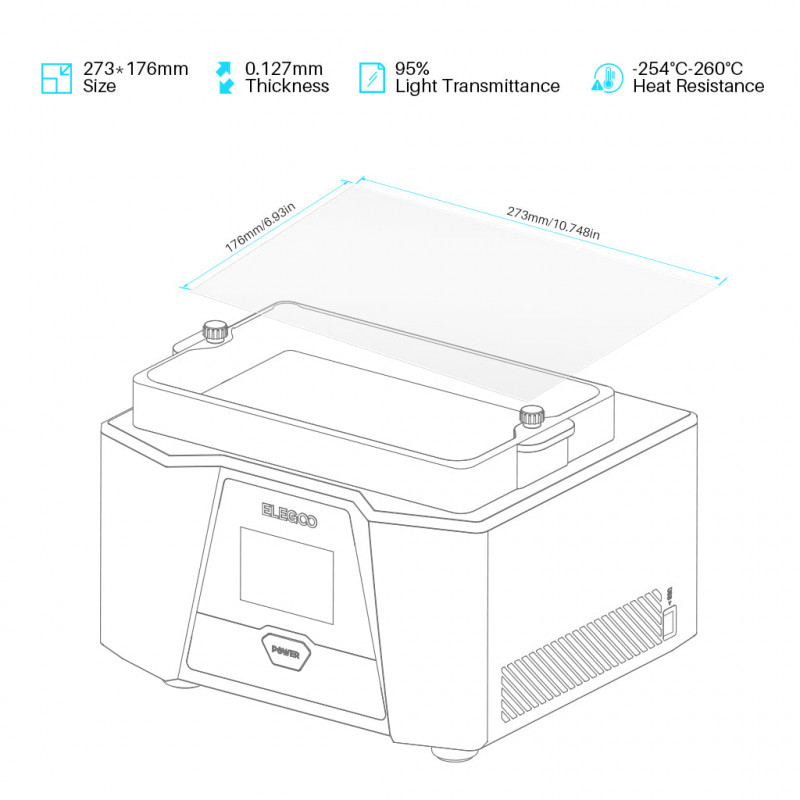 - High UV Transmittance: 95% UV light transmittance for faster and more accurate curing of 3D printed models.