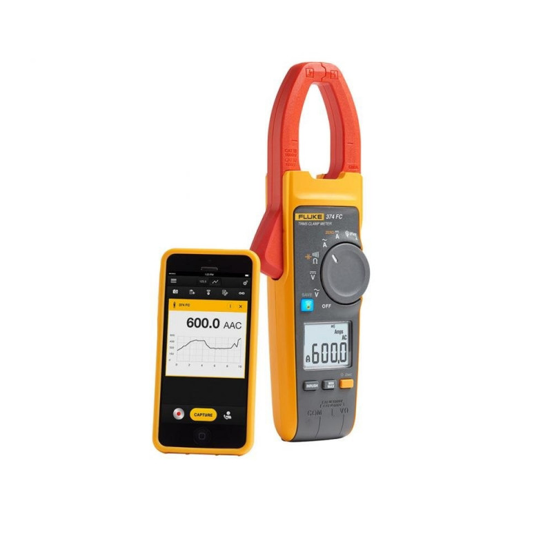 The Fluke 374 FC, part of the Fluke Connect family of wireless test tools, delivers the standard features you need for everyday troubleshooting. Measure AC and DC current to 600 A with the fixed jaw clamp or add an optional iFlex flexible current probe to measure all the way to 2500 A. The large diameter and flexible design of the iFlex probe make it easier to measure around large conductors in tight spaces or to access tightly packed wires. You can also use the 374 FC to measure AC and DC voltage to 1000 V and resistance to 6000 .