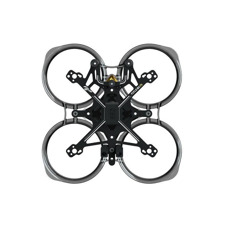 The Flylens 75 frame is a 1.6-inch whoop-type frame designed for indoor and narrow space flight. It is compatible with various mainstream digital and analog image transmission systems. The frame is equipped with an injection-molded protective ring and a carbon black treatment process.