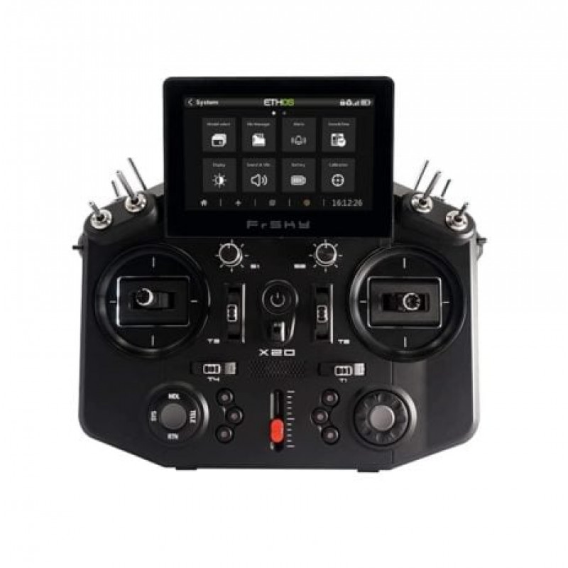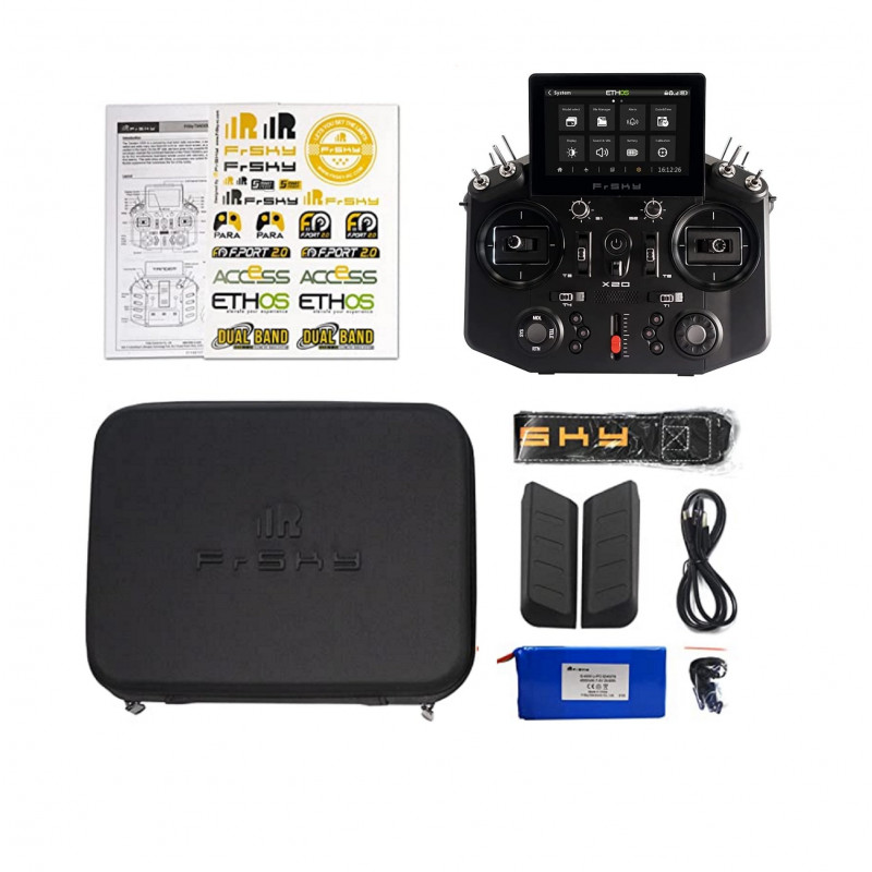 The Tandem X20 is a pioneering dual-band radio transmitter, it drew on feedback and experience with previous radios and adds many new features such as color touch screen, an ergonomic design that provides unprecedented comfort in the hand. On the RF side, we have given it the powerful RF system , the TD dual RF system, which does not simply reiterate the combined features of the FRSKY900MHz and 2.4GHz RF systems. The TD is characterized by its true simultaneous dual-band remote control with telemetry, enabling incredible and unmatched end-to-end 4ms latency. This radio ships with ETHOS, a completely new system that provides users with a powerful, intuitive, and flexible experience that maximizes the fun of the hobby
