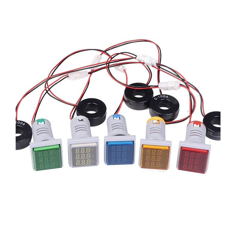 Green AC50-500V 0-100A 0-100Hz 22mm AD16- 22AVHz Square LED Voltage Current Hertz Three Display Indicator is a panel-mount device for current, voltage, and Hertz monitoring. Itgives you the best user experience for your projects it is lightweight, high quality, and durable