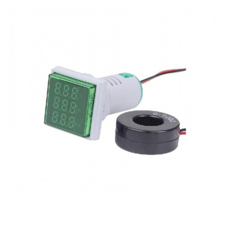 1 x Green AC50-500V 0-100A 0-100Hz AD16- 22AVHz 3 in 1 Square LED Voltage Current Hertz Indicator