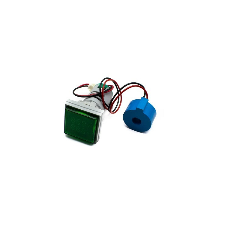 Green AC50-500V 0-100A 22mm AD16-22FVA Square Cover LED Voltage and Current Dual Display Indicator Light with Transformer