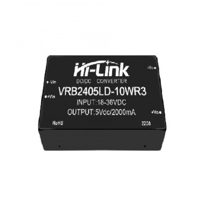 Description: HLK-10D2405B is a wide voltage DC-DC power module designed to convert input voltages ranging from 18 to 36V to a stable 5V output with a maximum current of 2A and a power rating of 10W. This compact module is suitable for various applications, providing a reliable and efficient power supply solution in a wide voltage range. Its design makes it particularly useful in scenarios where a consistent 5V power source is required for electronic devices or embedded systems.