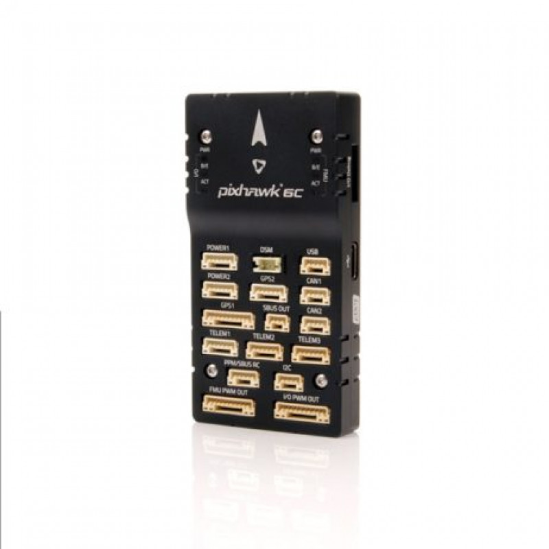 The Pixhawk 6C is the latest update to the successful family of Pixhawk flight controllers, based on the Pixhawk FMUv6C Open Standard and the Connector Standard. It comes with PX4 Autopilot pre-installed. Inside the Pixhawk 6C, you can find an STMicroelectronics based STM32H743, paired with sensor technology from Bosch & InvenSense, giving you flexibility and reliability for controlling any autonomous vehicle, suitable for both academic and commercial applications.