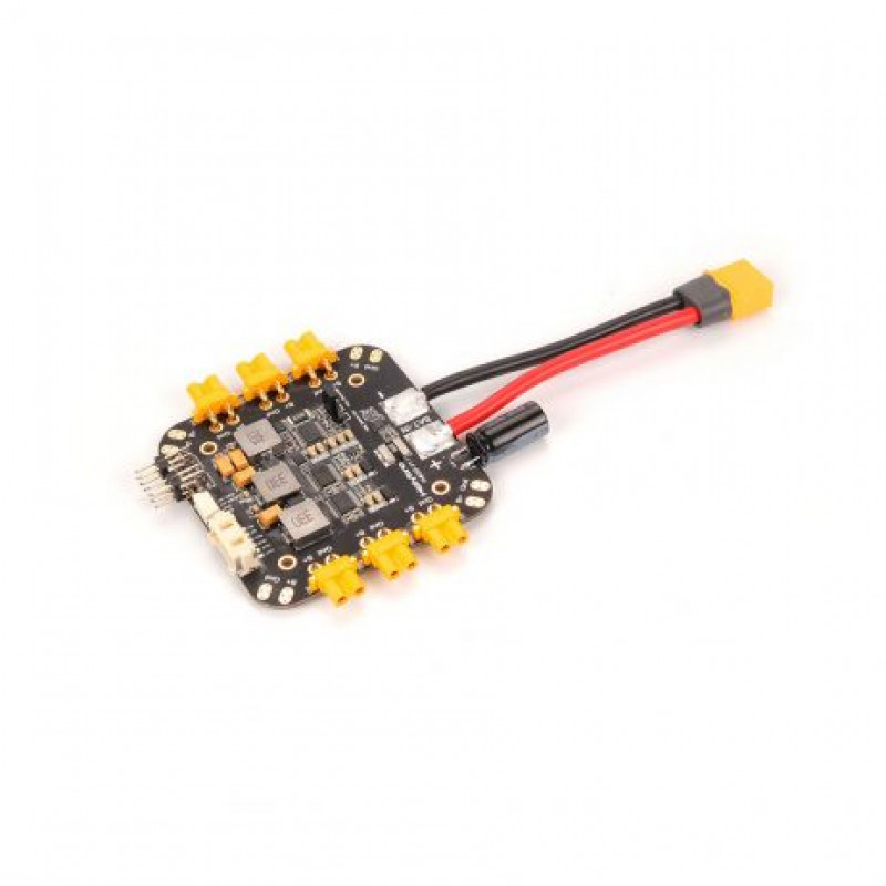 It is design for multi-rotor like the X500 V2. It has both XT-30 & XT-60 connectors preinstalled for motor ESCs and Battery, as well as two 5V BEC and a selectable 8V/12V output different kinds of peripheral devices.