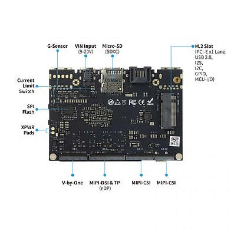 - Ports/slots:USB, Gigabit LAN, HDMI Input/Output, MicroSD, M.2 PCIe, MIPI-DSI, MIPI-CSI