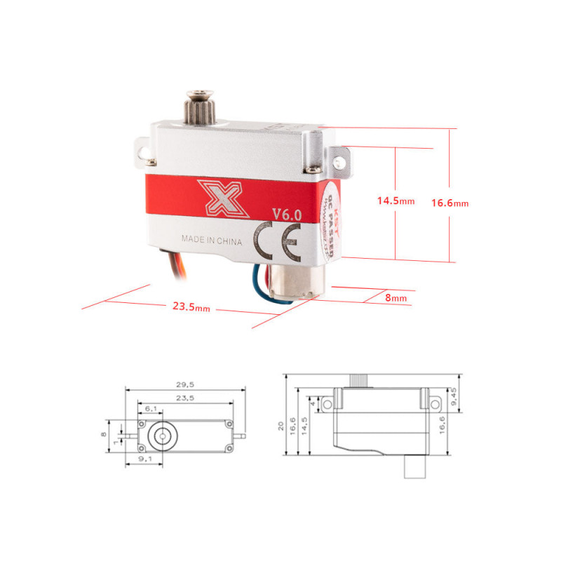 The X08H servo was based on their very popular 245 series, but they pushed the envelope even further. You get a tiny 8mm wide servo that can operate on a wide voltage range and produce up to 2.8kg of torque! That is very impressive, especially considering they weigh less than 9 grams. As we all know, it does no good if the gears are not accurate or tough, well, these are very accurate and very robust. The servo is now programmable with the KST Tool Card #1/ KST Tool Card #5 (sold separately) to adjust the endpoints, center, and direction for the perfect installations. Ideal for DLG use, but also very capable in larger planes.
