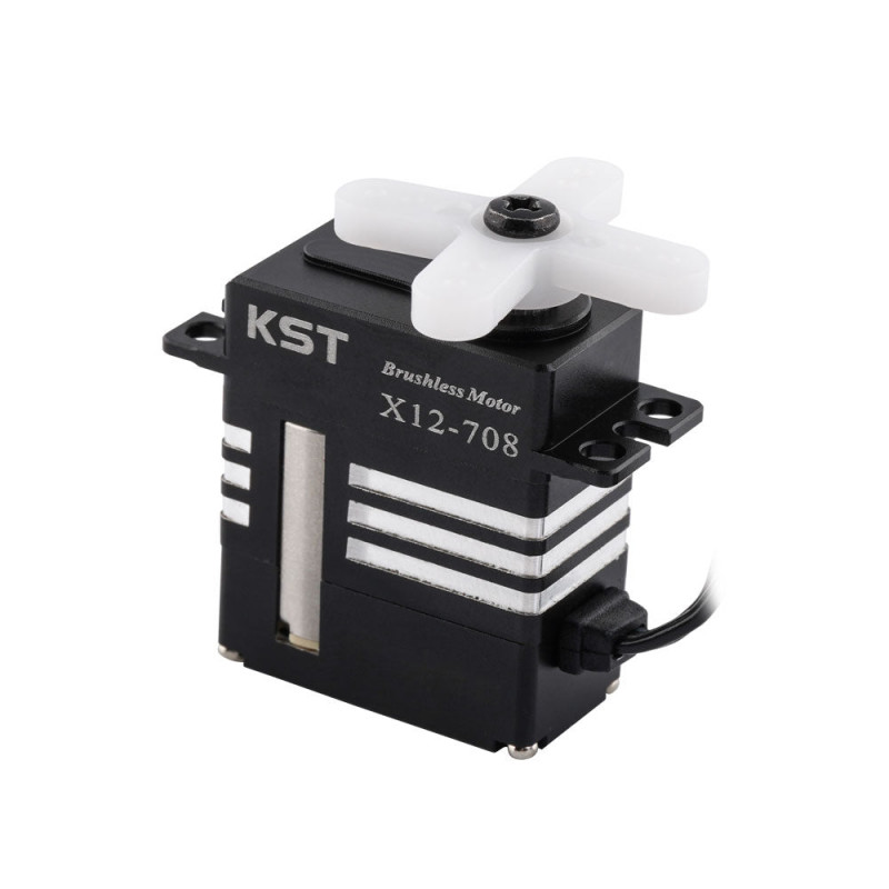 Everything you ever wanted in a micro servo! Presenting you the new, revised, and innovative X12-708 Micro DC brushless servo. Its now possible to program and tune a micro servo to your liking. The new design provides a strong, faster, and more efficient servo. This makes it possible to reach torque of up to 9.3 kg.cm and speed down to 0.07 sec/60deg. The down-toned wires apply a much sleeker and even more modern look. This concludes other amazing X12 servos in the KST family.