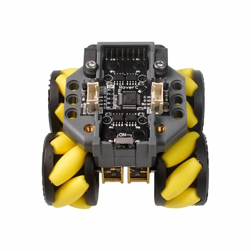 RoverC-Pro is a programmable Mecanum wheel omnidirectional mobile robot base. Compatible with M5StickC/M5StickC PLUS, it can be initialized by just inserting M5StickC/M5StickC PLUS. The main control chip is STM32F030C6T6, and it incorporates four N20 worm gear motors to drive the wheels directly by the motor driver.