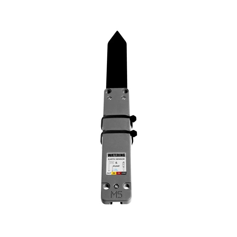 Presenting M5STACK Watering Unit with Moisture Sensor and Pump with a capacitive soil moisture detection and adjustment unit. The product integrates a water pump and measuring plates for soil moisture detection and pump water control. It can be used for intelligent plant breeding scenarios and can easily achieve humidity detection and Irrigation control. The measurement electrode plate uses the capacitive design, which can effectively avoid the corrosion problem of the electrode plate in actual use compared with the resistive electrode plate.