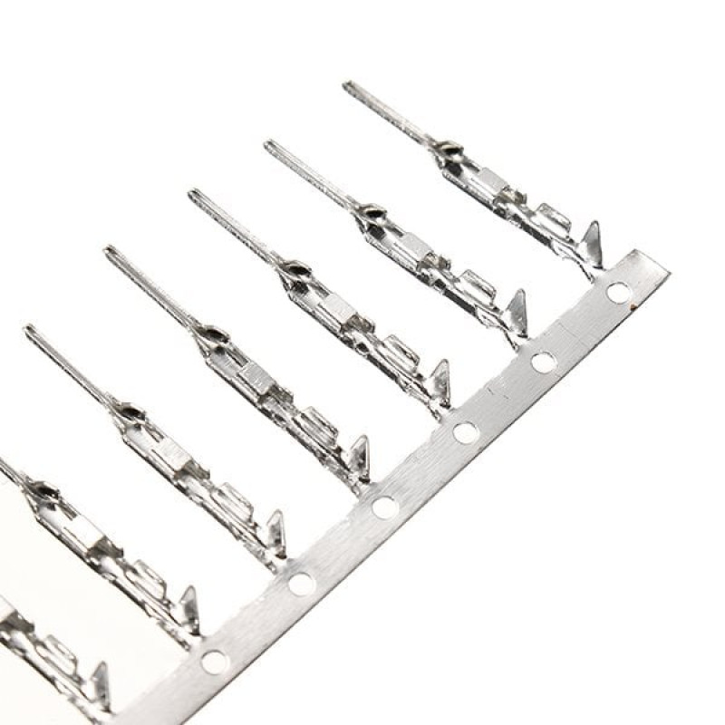 This is Male Dupont Terminal Reed Connector 2.54mm A common DuPont 2.54mm pitch connector Plug-in Male Crimps, compatible with Female DuPont 2.54mm Plug connectors.
