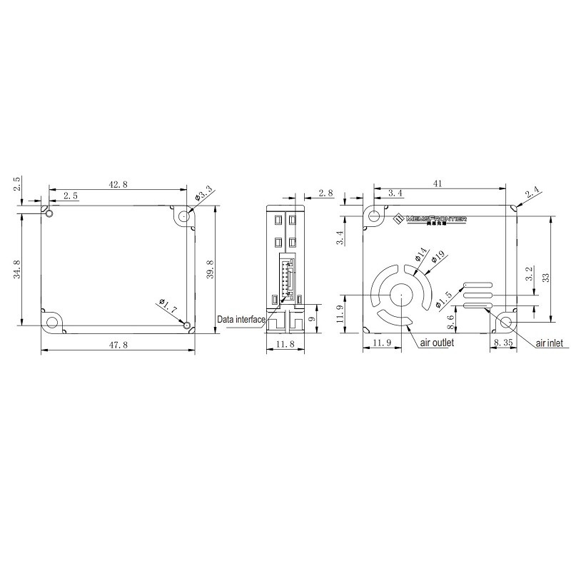 MemsFrontier Laser PM sensor(Air inlet and outlet are on the front, GH1.25mmconnector)-MPM12-BG