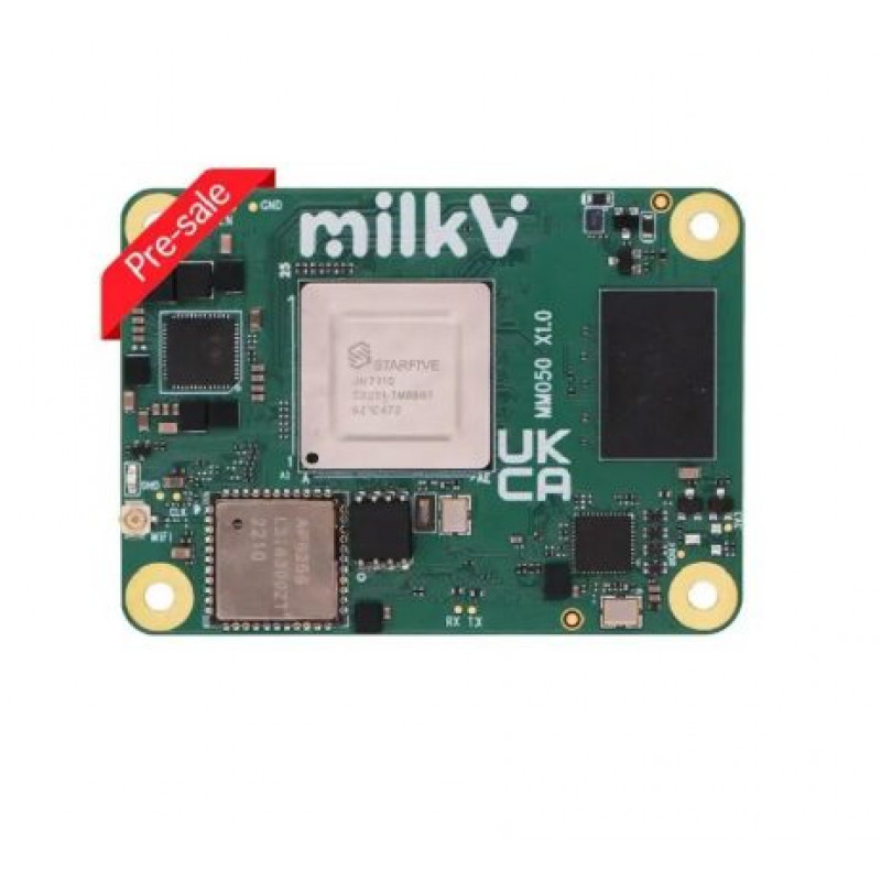 Milk-V Mars is a high-performance RISC-V Single Board Computer (SBC) the size of a credit card, built on the StarFive JH7110. This four-core device supports a plug-and-play eMMC module, as well as up to 8GB of LPDDR4 memory. The board is equipped with three USB 3.0 ports, one USB 2.0 port, an HDMI 2.0 port that supports 4K resolution, an RJ45 Ethernet port that supports PoE (Power over Ethernet), and an M.2 E-Key slot for a WIFI/BT module. It also includes a 4-lane MIPI DSI and a 2-lane MIPI CSI, along with a 40-pin GPIO.