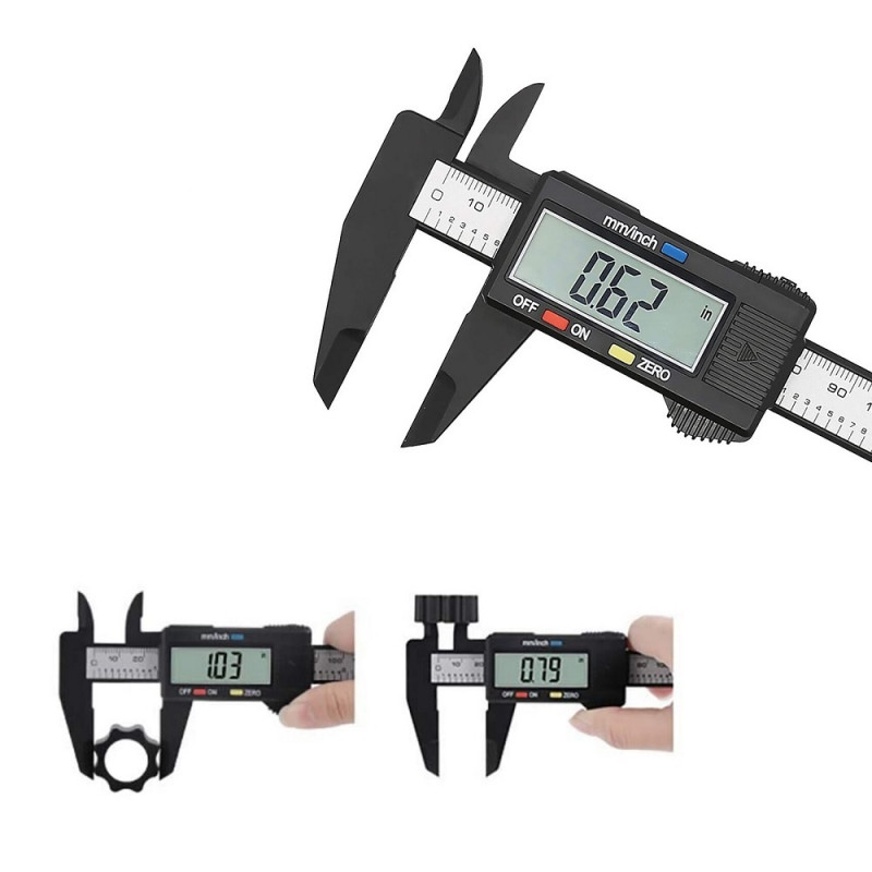 The Model Craft mini pocket size vernier micrometer is widely used for measuring of industrial accessories, handicrafts, pearls, and jewels. It can measure inside, outside, depth, and step size with two sets of jaws and the probe. Made of strong Plastic, with carbon fiber composites, lightweight and durable, Linear capacitive measuring system, Zero setting in any position, With easy read large LCD display, Minimum scale to read is 0.1mm / 0.01 inch, An ideal tool for a broad range of industrial and automotive applications