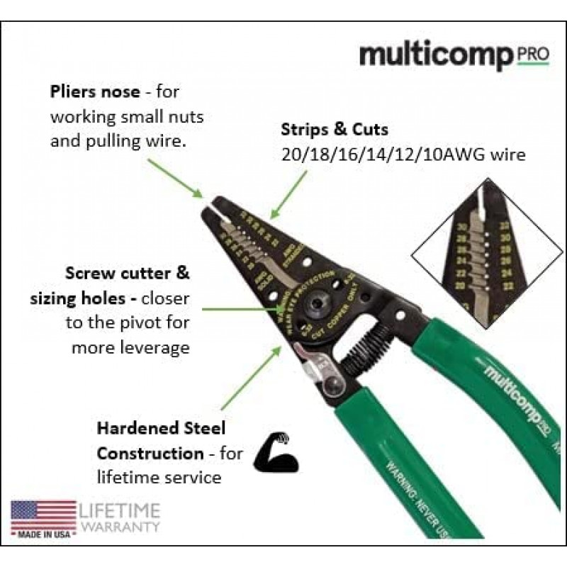 This is a high-Quality MULTICOMP PRO MP700123 NM-B CABLE STRIPPER, 14AWG-12AWG. Durable steel wire strippers/cutters make removing the outer jacket quick and easy. With specially designed cutting blades and soft double-dipped grips provide a comfortable, long-lasting tool. Lifetime warranty.