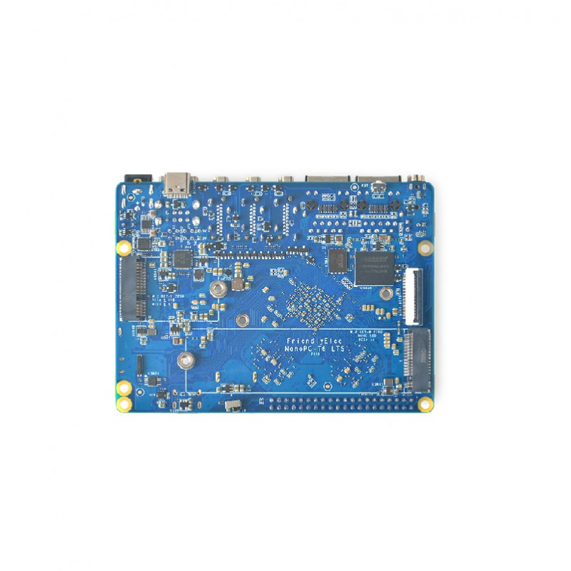 NanoPC-T6 LTS (as 6) is a one-for-all high-performance open-sourced platform for edge computing, designed and developed by the FriendlyElec team. It has two 2.5G Ethernet ports. It is based on Rockchips RK3588, and has 4GB LPDDR4x RAM and with optional 32GB eMMC flash. It works with systems including OpenMediaVault, FriendlyWit, Android, Android TV, Debian, Ubuntu etc. It supports GPU and VPU acceleration.