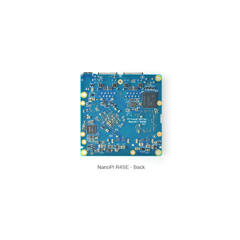The NanoPi RASE (as R4SE) is a high-end FriendlyElec mini-router with edge-computing and dual Gbps Ethernet ports. Its dimension is 66 x 66 mm. It is powered through USB Type C port. It works with FriendlyWRT, Ubuntu, Armbian etc. The NanoPi R4SE uses Rockchips high performance RK3399 SoC. This SoCs frequency can reach as high as 1.8GHz. The NanoPi R4SE has 4GB LPDDR4 RAM, 32G eMMC and dual Gbps Ethernet ports. It supports dynamic frequency scaling. It has two USB 3.0 ports that can interface with external hard drives, 4G modules, USB HD cameras, USB WiFi modules etc. In addition, it has a MASK key. When the key is pressed the board will enter the USB installation mode. Specifically FriendlyElec released a CNC metal case with fine engineering works for the NanoPi R4SE. This metal case has excellent heat dissipation. In our test when assembled with this metal case the NanoPi R4SE could run smoothly without frequency reduction.